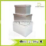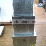 Set Of 3 Silver Black Alligator Faux Leather Storage Box With Lid