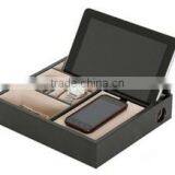 Black Faux Leather MDF Cell Phone Charging Organzier For Office/Hotel/Home