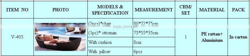 2). Aluminum Frame Construction: light weight but strong, spray with good powder coating, which resist the elements further and ensure furniture retain its good looks; 1.2mm & 1.5mm thickness avaliable.