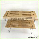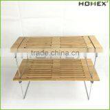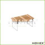 Bamboo Stackable Storage Shelf /stacking Rack With Steel Legs Homex-BSCI