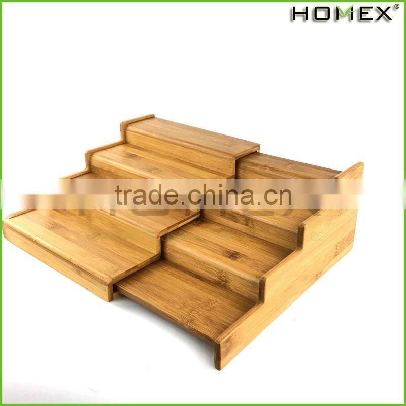 Expandable Bamboo Spice Rack Step Shelf Organizer Homex-BSCI