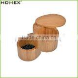 Facotry Supply Solid Bamboo Spice Box 2 Departments Bamboo Salt Box With One Lid/Homex_Factory