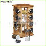 Revolving Round Top Bamboo Spice Rack With Spice Jars Set/Homex_FSC/BSCI Factory
