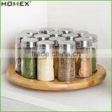 Rotating Bamboo Spice Set With Glass Jar/Natural Spice Rack/Homex_FSC/BSCI Factory