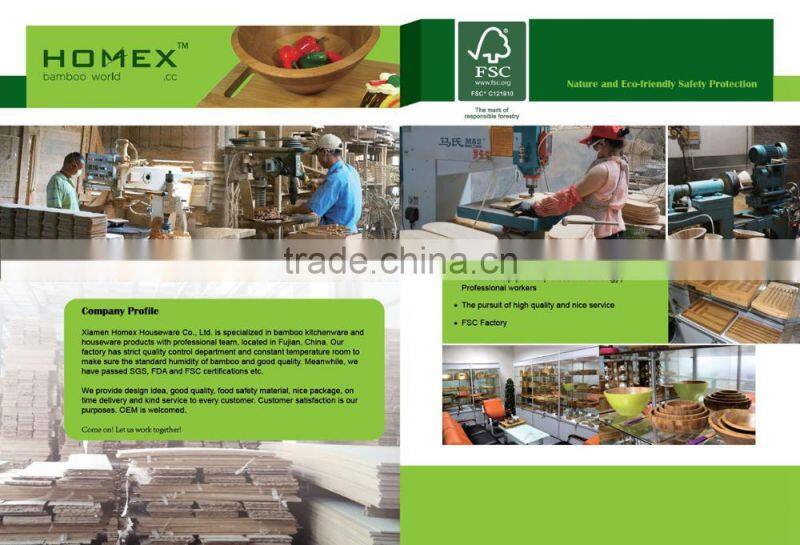 Xiamen Homex Houseware Co., Ltd. is specialized in bamboo kitchenware and wooden houseware products with professional team, located in Fujian, China.