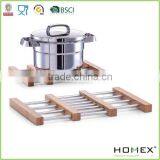 Extensible Bamboo Trivet With Metal/Homex_FSC/BSCI Factory