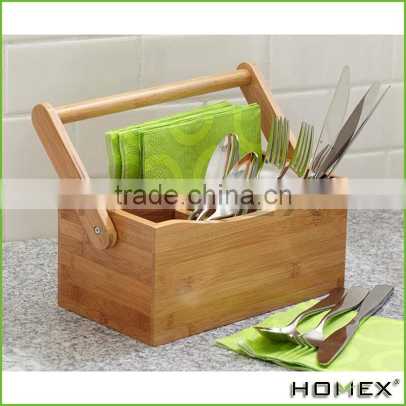 Bamboo Cutlery Holder Utensil Caddy w Folding Handle Homex-BSCI Factory
