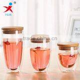 350ML Clear Double Wall Glass Tea Cup With Bamboo Lid