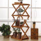 Wooden Flower Stand With Wheels, Wood Stand Can Put Flowerpot and Move Easily