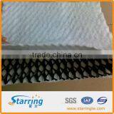 composite Geotextile with 3D Drainage Net is a unique three-dimensional double-sided sticky geonet and nonwoven geotextile made of. Integration of geotextiles (filtration effect) and geonet (drainage and reinforcement effects), played a "filtration - Drainage - to protect" the overall effect. Unique three-dimensional three-dimensional composite drainage network structure, in the course can withstand high pressure loads, and can maintain a considerable thickness, high tensile strength, corrosion resistance, acid and alkali, drainage capability, which provides a very high hydraulic conductivity
