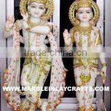 White Makrana Lord Vishnu Laxmi Statue Handcrafted