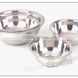Mayur Exports provides you a wide range of stainless steel mixing bowls and serving bowls that are of unique in shapes and designs to befit the choices of different clients. We specialize in developing these bowls as per the specifications provided by clients.