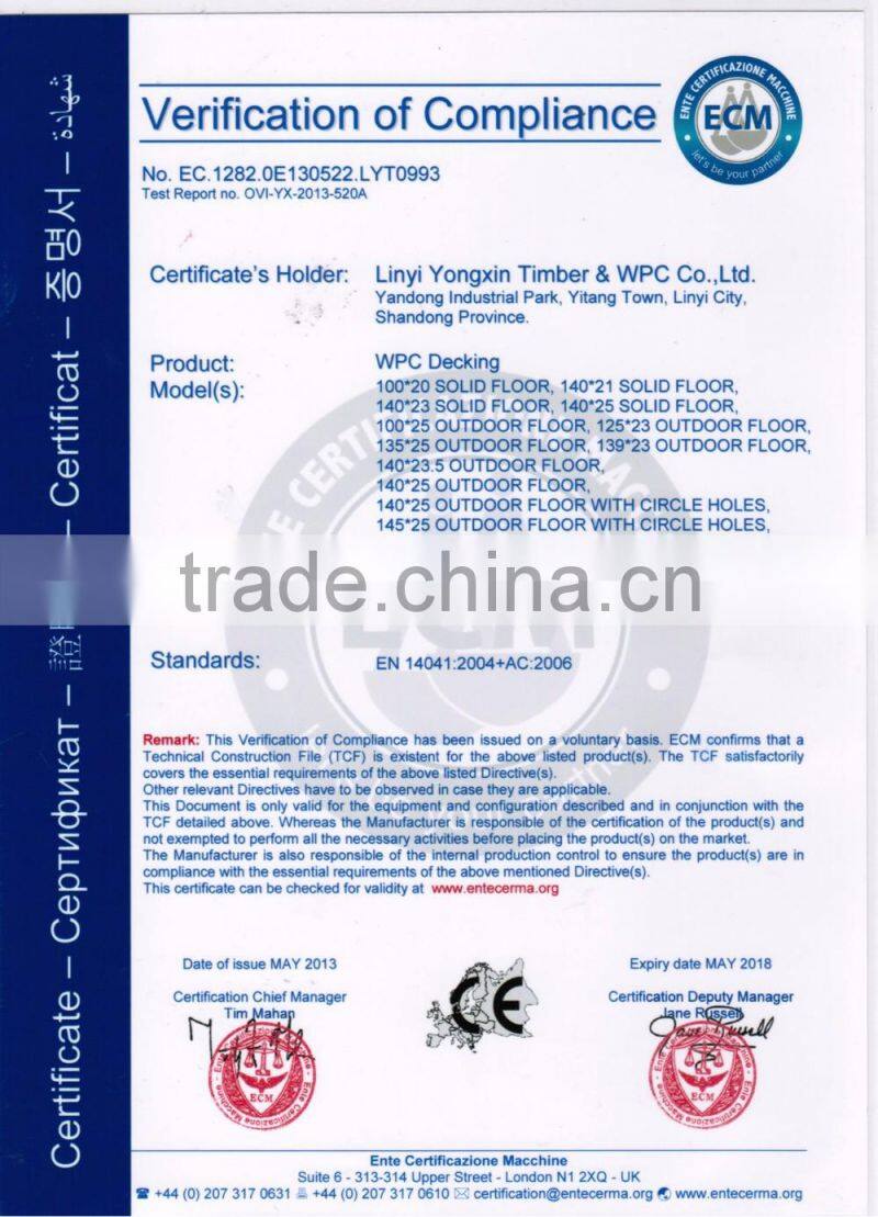 Advantage: Waterproof,mildew resistant,Moisture resistant,no rotting,low flame spread ; Available in different colors and wood grain design ;Green ecological, Innovative technology, Lifestyle