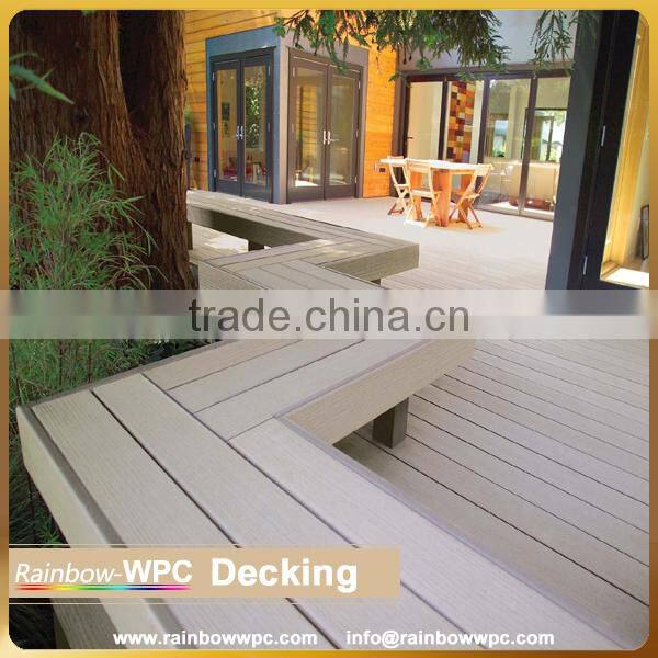 Rainbow Bridge Wood Plastic Composite is a revolutionary new type environmental building material. The world's wood alternative technology matures currently, and our products are applicable to large-scale industrial production. Our product surface does not need to do any processing, such as printing. The veneer has textures such as the texture of natural wood. Besides, with the advantages of waterproof, termite resistance, fire resistance, environmental protection and so on, and the characteristics of ageing resistance and color fastness testing indicators, our products meet the State standards, and fit for the country's policy of "energy-saving emission reduction".