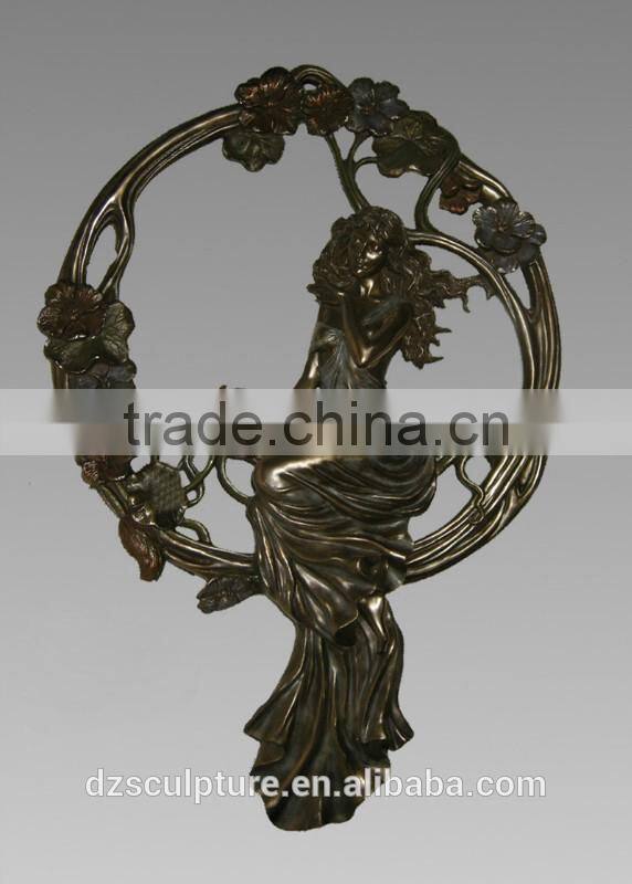 Decoration Flowers Bronze Sexy Girl Relief Statue on Home Wall