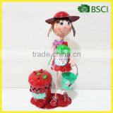 Outdoor Cute Iron Girl With Garbage Bin for Home Decoration