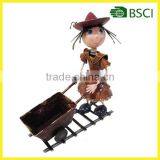 Metal Doll With a Cart Flower Pot for Home Decoration