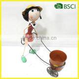 YS14669 Popular Home Deco Girl Cart Design Metal Flower Pot