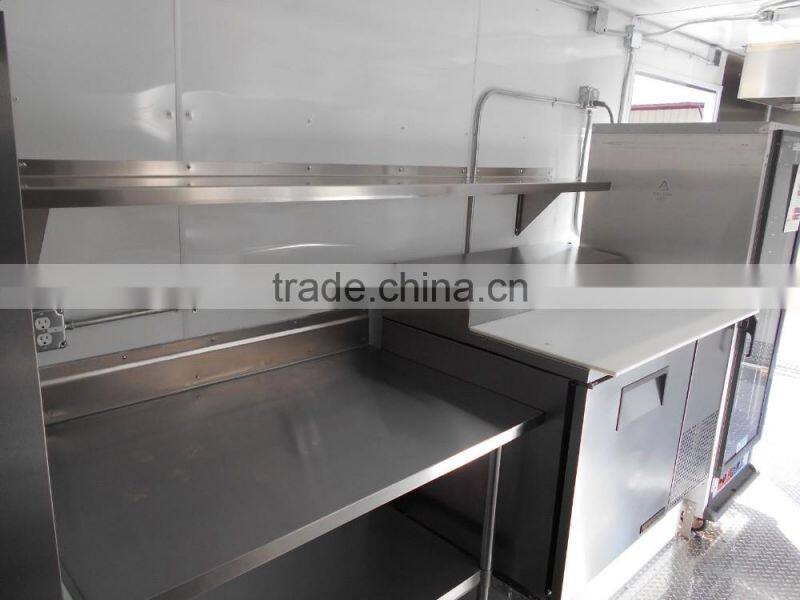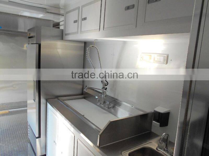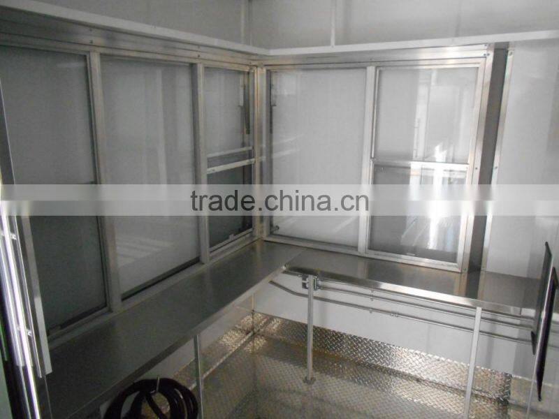 Using 304 stainless steel for kitchen, everything inside the food trailer can be customizable, Ice-cream trailer, BBQ trailer, snack trailer, hot dog trailer, hamburger trailer, porcorn trailer....etc,whatever food trailer you would like us to make it, we do it for you, only meet your demand and requirment.