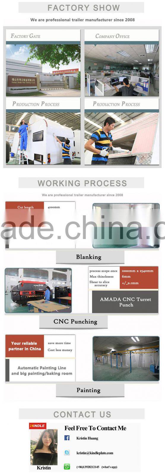 Below are some of the standard trailers in our factory, we offter customized service, everything is customizable. Welcome you visit our factory with your own idea.