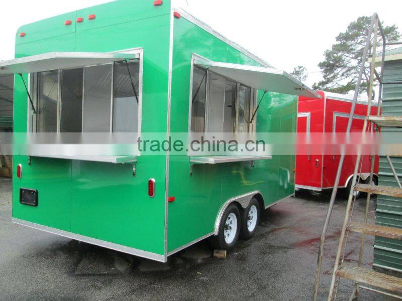 Using 304 stainless steel for kitchen, everything inside the food trailer can be customizable, Ice-cream trailer, BBQ trailer, snack trailer, hot dog trailer, hamburger trailer, porcorn trailer....etc,whatever food trailer you would like us to make it, we do it for you, only meet your demand and requirment.