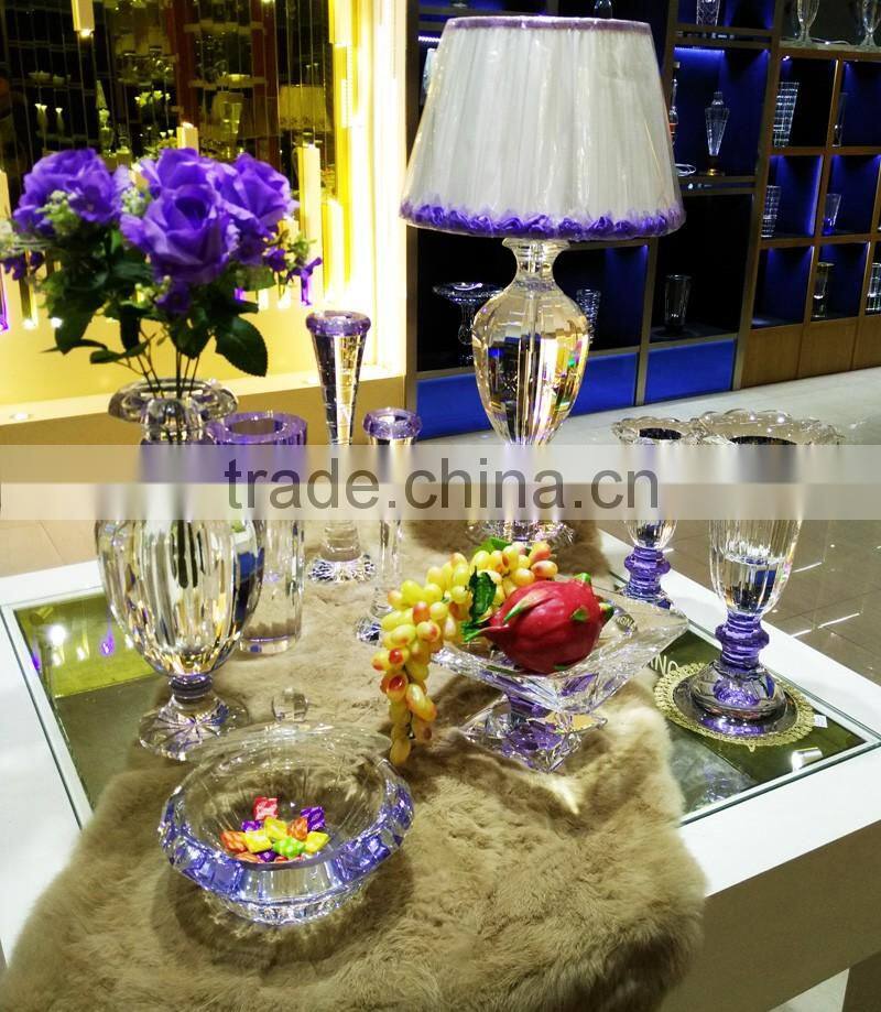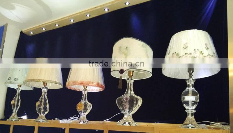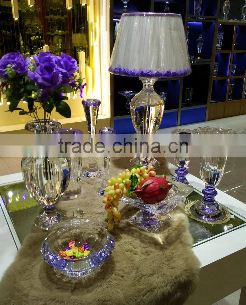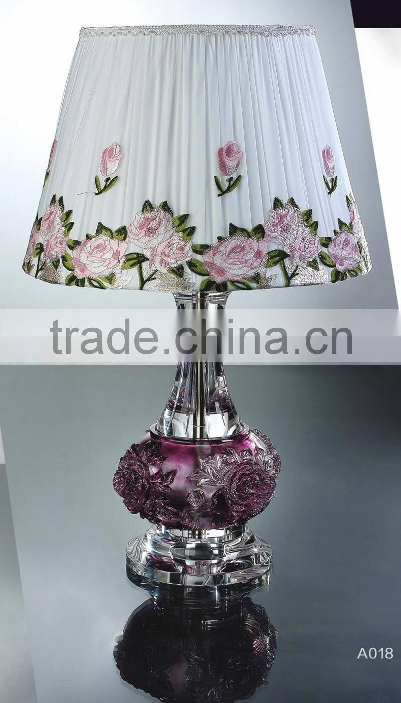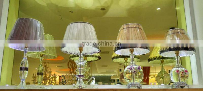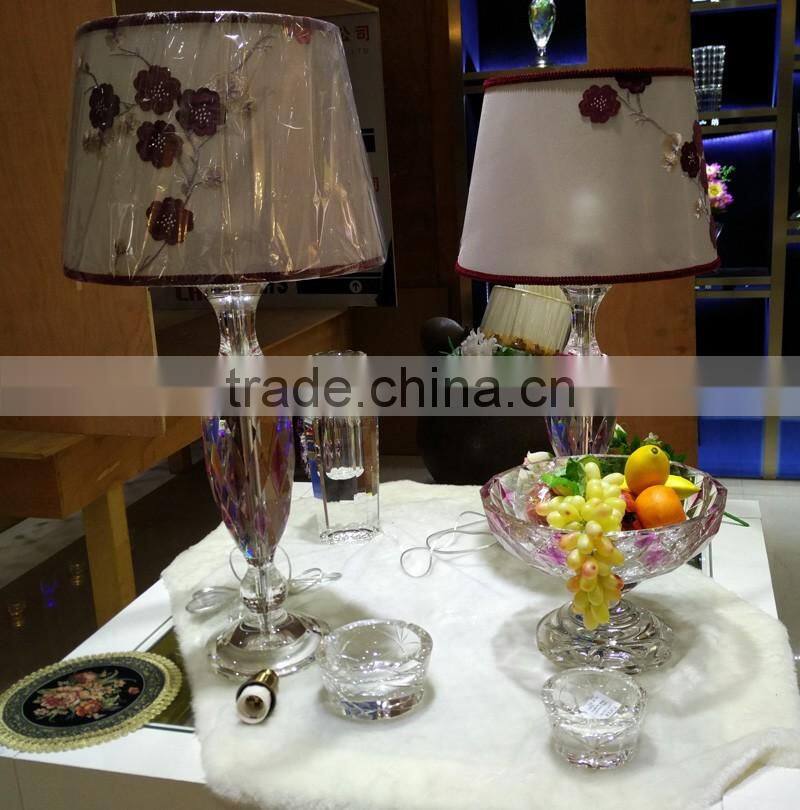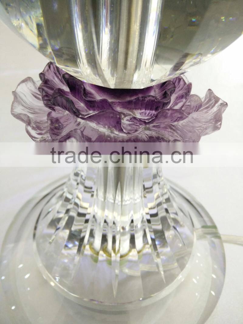 modern design high quality crystal table lamp, use top quality K9 crystal material, excellent master hand carving and polishing, match with color glaze flower, to show it unique with other table lamps.