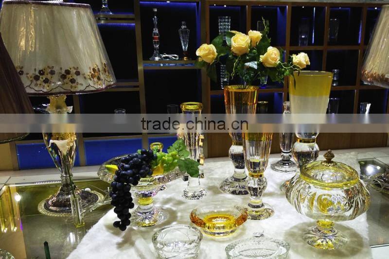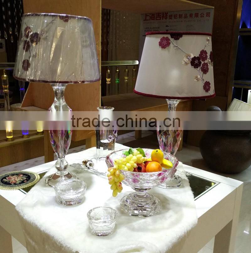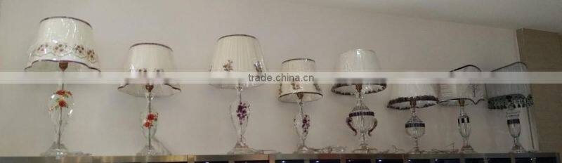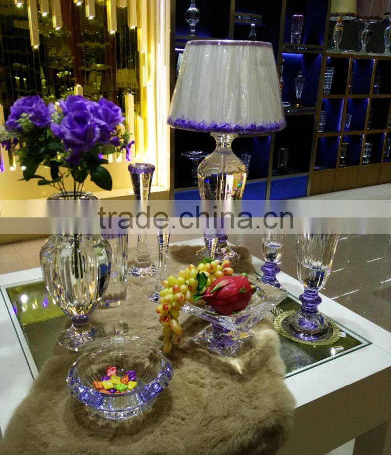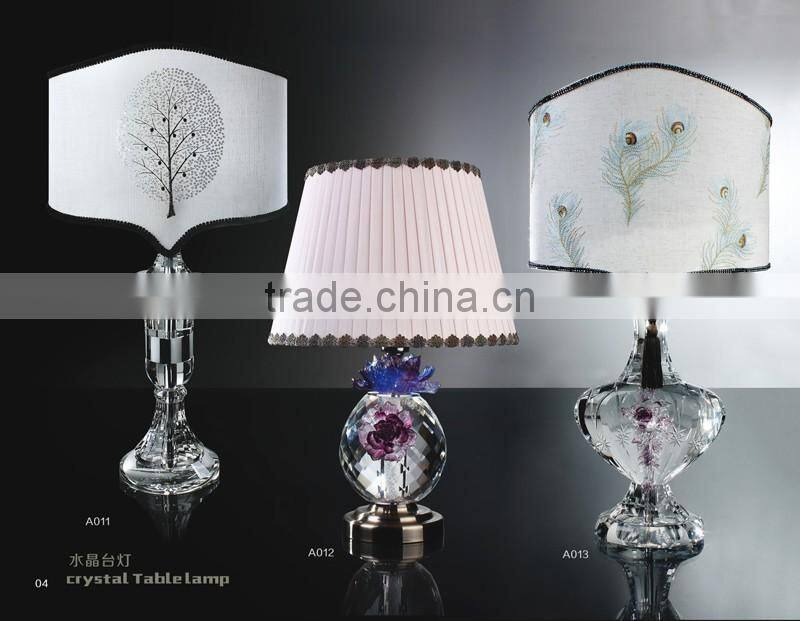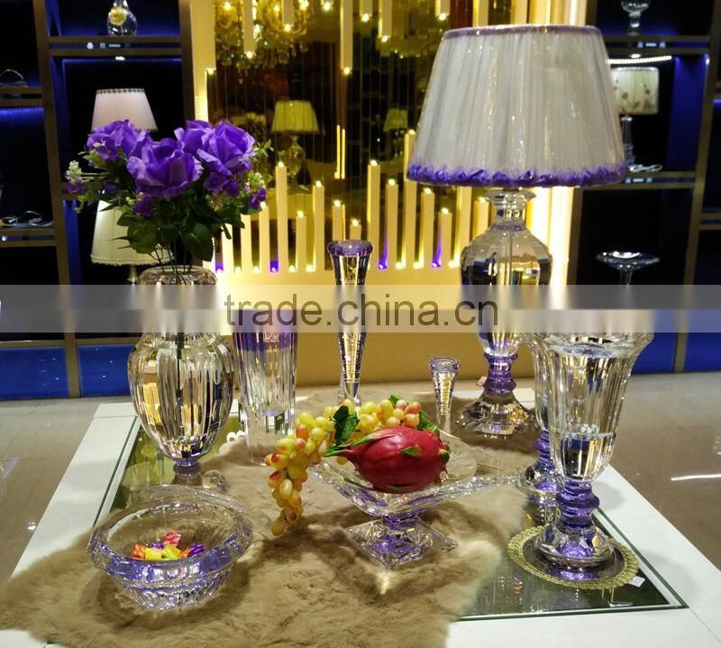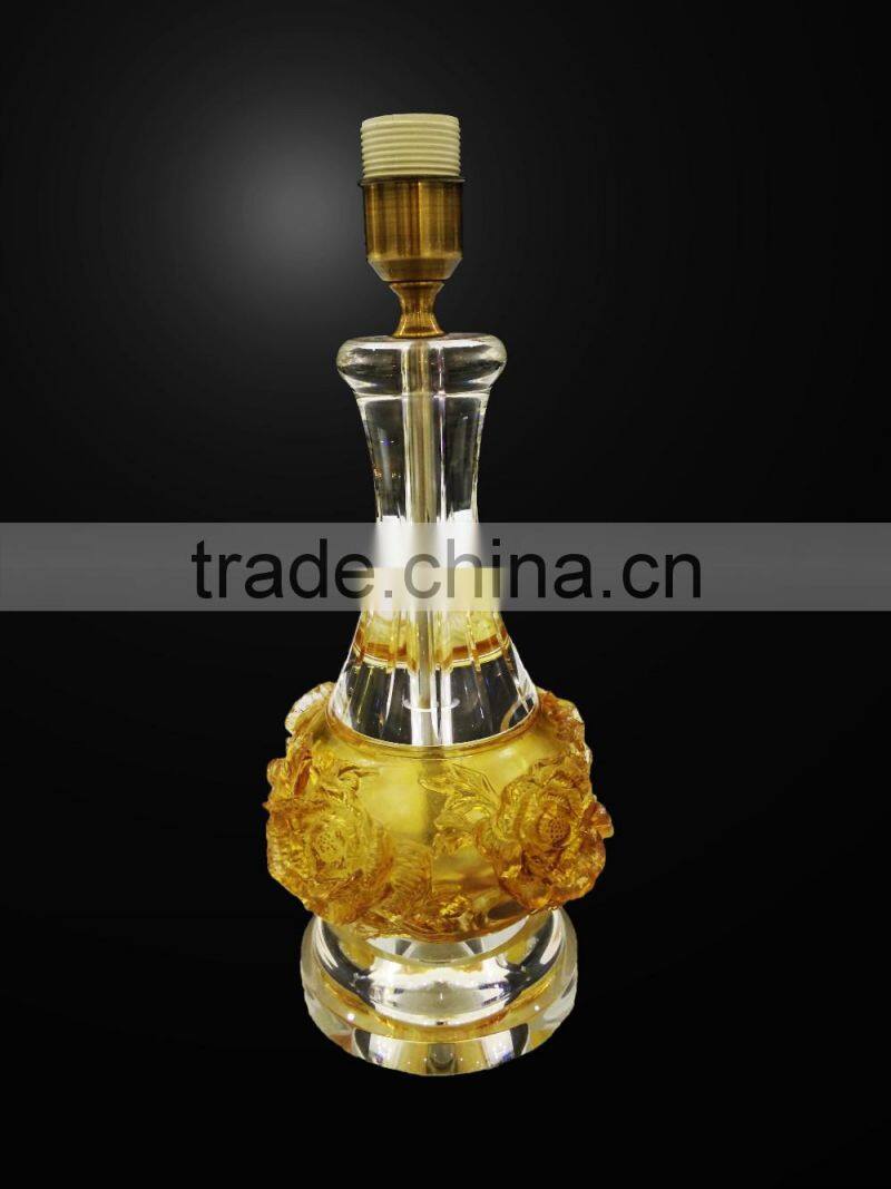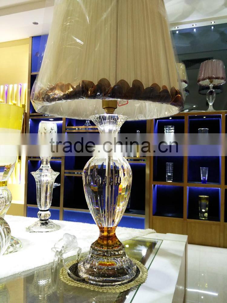 modern design high quality crystal table lamp, use top quality K9 crystal material, excellent master hand carving and polishing, match with color glaze flower, to show it unique with other table lamps.