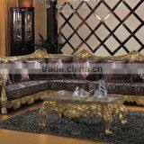 BISINI Delicate Gold-foiled Wood Carved Sectional Sofa Set For Hotel Lobby