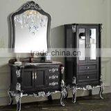 Bisini Neo Classic Solid Wood Carved Royal Black Bathroom Cabinet With High Quality Polished Marble Countertop BF12-05194a