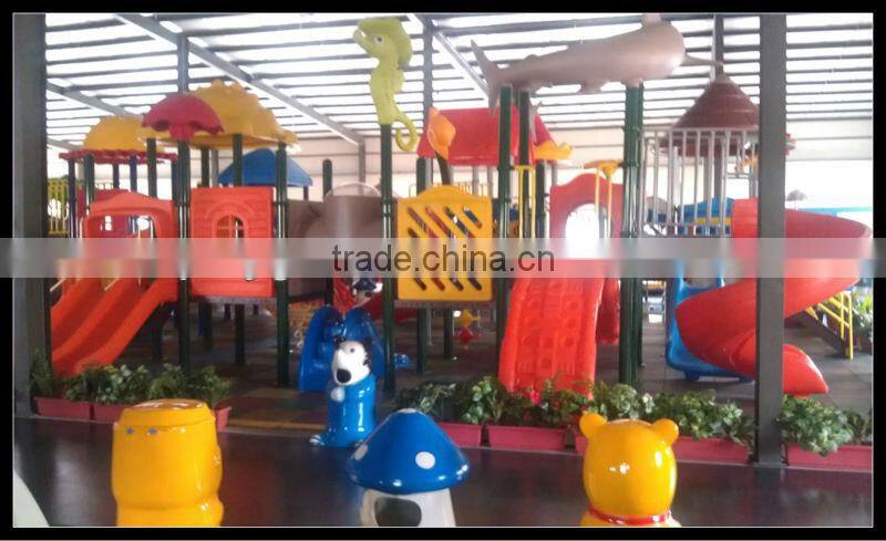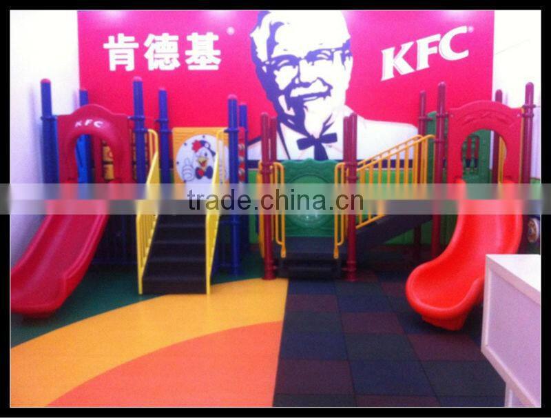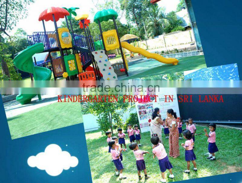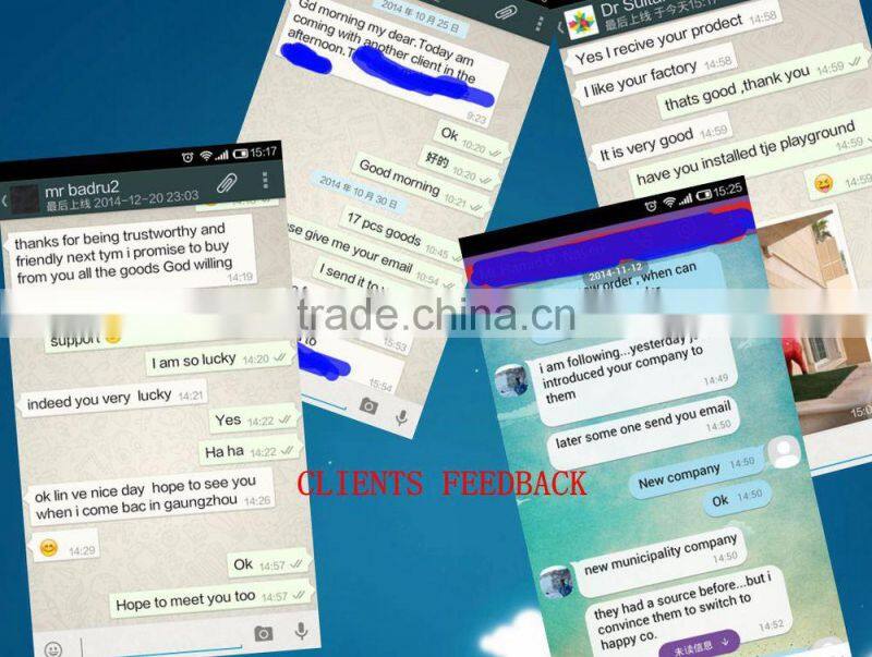 Material | 1.Plastic parts: A. made from LLDPE(Linea Low Density Polyethylene),safe, no lead, environmenal friendly ,no smell, non-toxic and durable; B. The plastic is anti-static ,anti-UV ,the color is always fresh and new C. All the parts are foldable ,but it has strong lock system ,different design can be assembled . D.The columns are made of international standard galvanized steel pipes ,the pipe thickness is 4mm , φ114 ,cleaned by acid then coated with phosphate solution ,and finished with electro-static powder coating . E. We can design the playground deck height as per client's requirements , ,90cm ,120cm ,150cm . The decks also can be rubber coated . F.We provide the top class quality playgrounds hardwares .(Lockying system ,screws ,etc ). G. It is easy to install ,we will offer complete installation manual . |