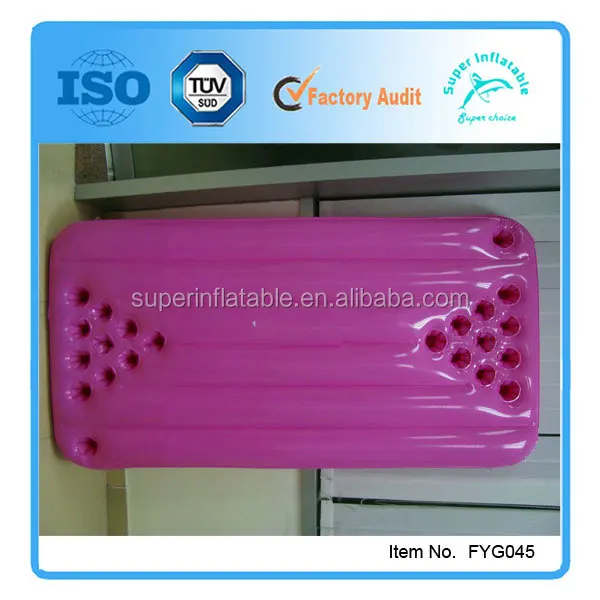 This pink floating blue beer pong table serves as a portable base on which beer pong can be played.