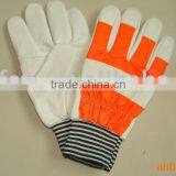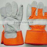 Orange Cotton Back With Grey Cowsplit Leather Palm,Heavy Duty Gloves
