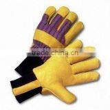 1.Cow grain leather palm and thumb2.stripe cotton back