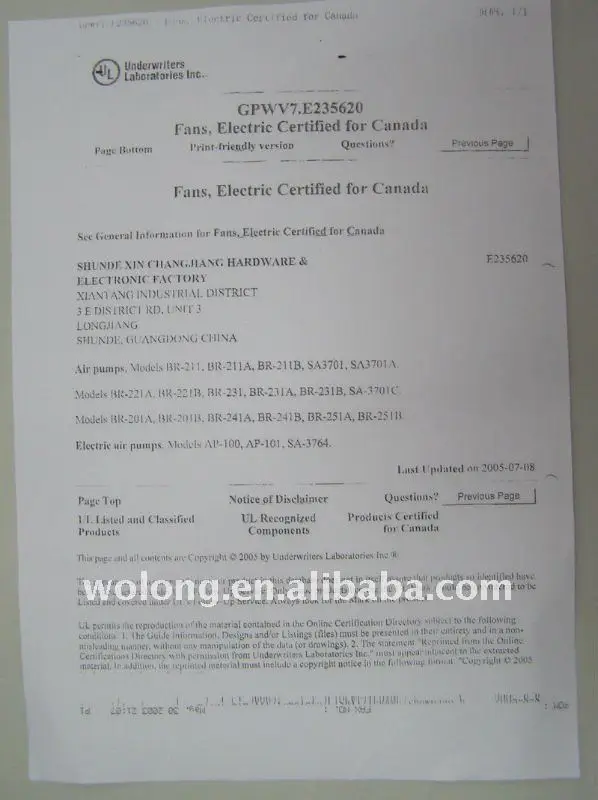 Our blowers and pumps are with the certificate of CE/UL.