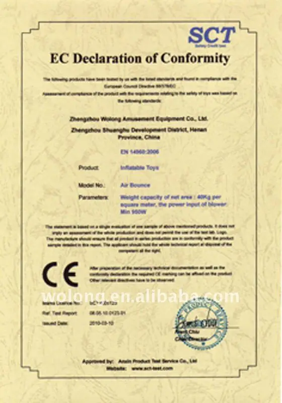 We insist continuous innovation and elaborate manufacture,after 20 years development, Wolong has become the largest inflatable manufacture in China,possesses more than 800 employees,among them there are more than 100 professional technicians.Our products take the market share over 70% in domestic market,and export to more than 30 countries such as South Korea,Russia,DUBAL,America,Australia,England,Netherlands,Algeria,Brazil,and so on,Wolong has grown to the leading enterprise in the inflatable industry.