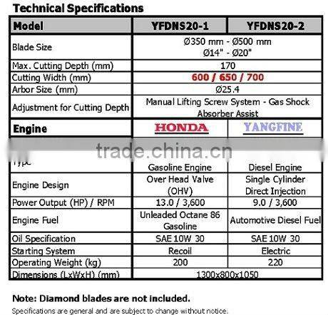 YFDNS20 is a single /double blade floor cutter suitable for blades 350mm and 500mm and able to perform cuts of 600,650and 700mm wide.