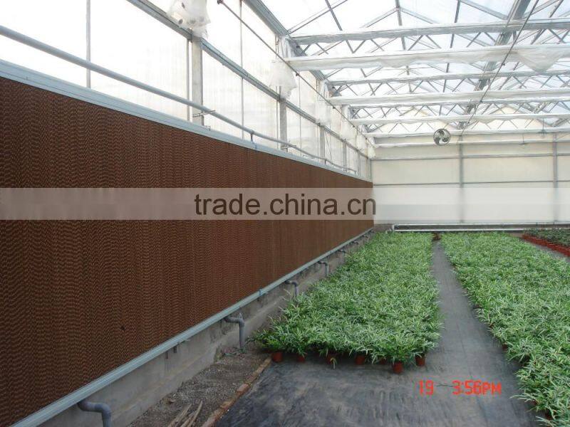 Principle of evaporative cooling using water for cooling purpose, special water-repellent pad to ensure the water is evenly wet the entire cool wet curtain wall, air penetrating the media pad, pad heat exchange surface of the water, and thus the air humidification and cooling.