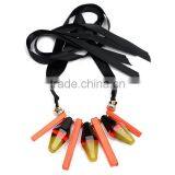 Europe America New Design Exaggerated Geometric Acrylic Pendant Necklace Adjustable Silk Ribbon Necklace