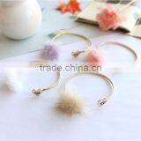 Mink Fur Pompon Cuff Bangle Marten Fur Pom Pom Cuff Bangle Customized Hug me Heart Gold Cuff Bangle