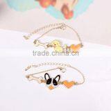 Lovely Dog Bone and Heart Charms Bracelet Enamel Animal Charms Bracelet Gold Chain Bracelet