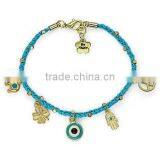 Gold Hamsa Hand Fatima Hand Evil Eye Charms Bracelet Wax Cord Bracelet