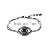 Gun Metal Chain Bracelet Rhinestone Evil Eye Gun Metal Plated Charm Bracelet