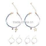 Gold Love Letter Moon Star Charms Bracelet Gold Chain Bracelet Silk Ribbon Bracelet
