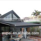 Aupal morden half cassette window awnings would to be the first and best choice for most customers choosing manually-operated awnings. This model requires no electricity. It opens and closes easily in less than a minute, using simple hand crank that operates smoothly and quietly. It features support arms that can be angled back against wall. Fabric self tensioning, easy adjustable pitch for rain runoff. Provide excellent sun and rain protection. Customizing your own requirements with one of our specialist today!