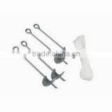 | Usage | screw into screw into the ground to hold down tents, canopies, storage buildings, fencing, playground equipment, trees, planes, as well as hundreds of other uses. |