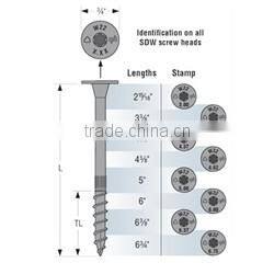 There are two basic types of drywall screw for installers to choose from. Type “W” units, or wood screws, have wide, coarse threads. They are used for wood framed buildings, where their coarse threading helps them to securely grip the wood. Type “S” screws are designed for use with steel framing members. They have a sharp, notched head that can easily penetrate the steel framing, as well as fine threads that are designed to pass through the steel.