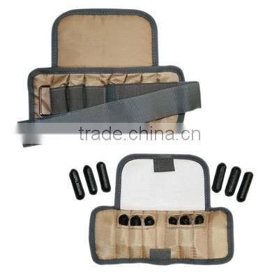 These inserts can be removed from the weight pockets to adjust the weight of the exerciser.