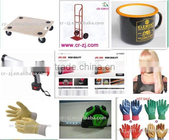 CR Imp. & Exp. Co., Ltd. is a leading Chinese manufacturer of transportation tools, hand tools, hardware,measure tools and safety products. Our large range of products includes hand trolleys, wooden dollies, flowerpot shelves, light racks, workbenches, hardware sets, tape measure ,fiberglass measure,spanners, wrenches, suction cups, pipe tools, rubber mallets, screwdrivers, steering wheels and casters. We have two working plants, with over 200 employees. Our annual sales value exceeds USD8,000,000. Currently, we export 100% of our products to our major target markets of France, Germany and the Middle East. Based on the principle of "Customer Highest, Best Service and Best Quality", we will strive to maintain extensive cooperative exchanges with traders from all parts of the world. It is our sincere wish to create a successful future based on mutual reciprocity and benefit. If you are interested in any of our products, or are searching for a supplier to fill your OEM order, please contact us to discuss your requirements.