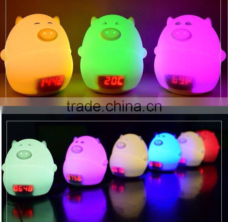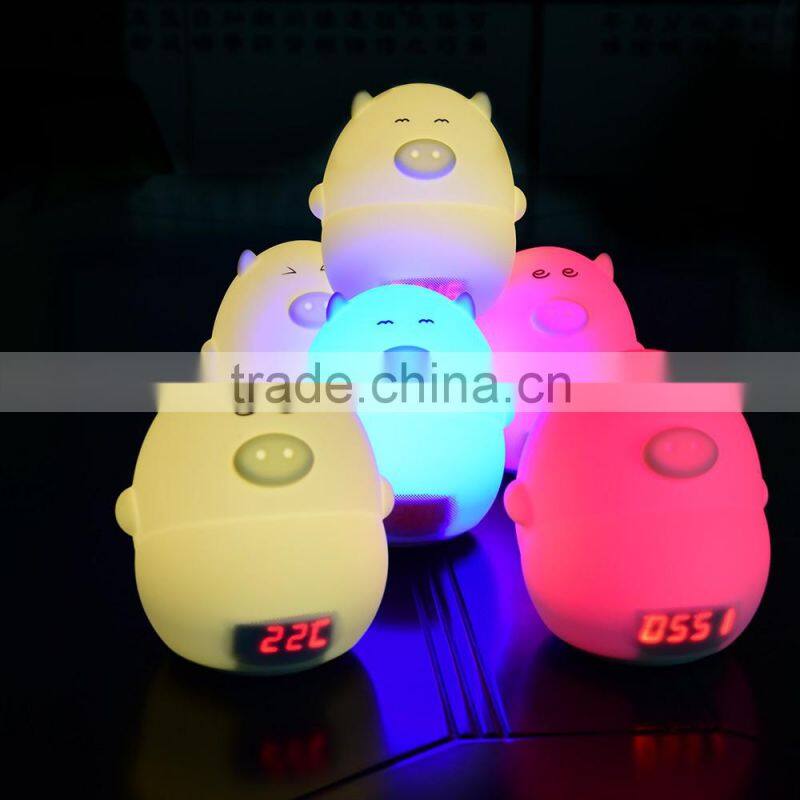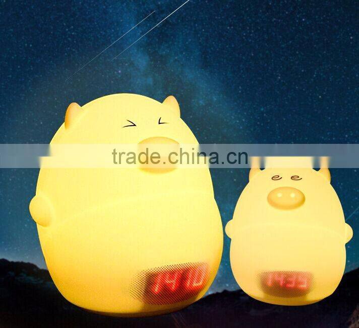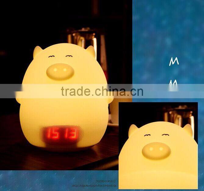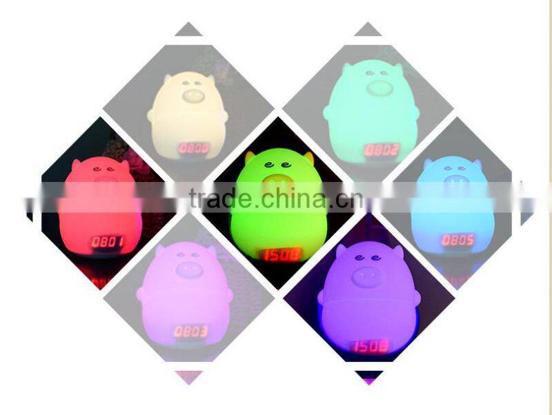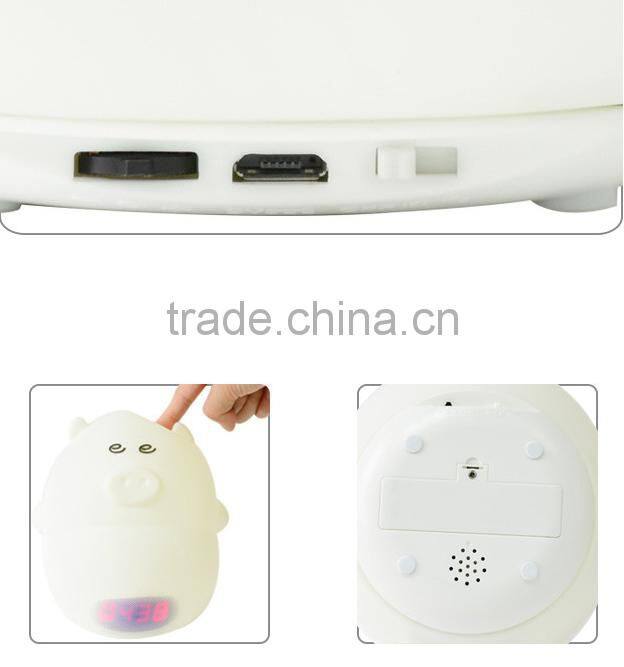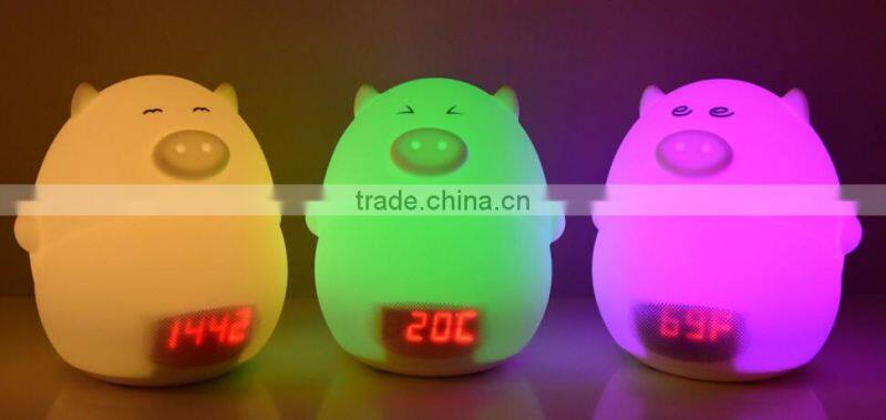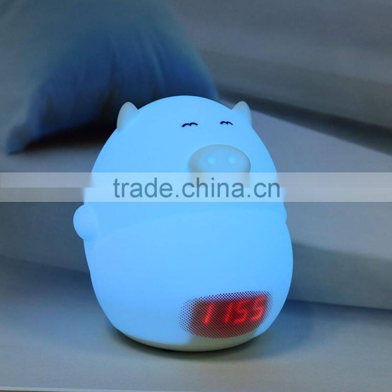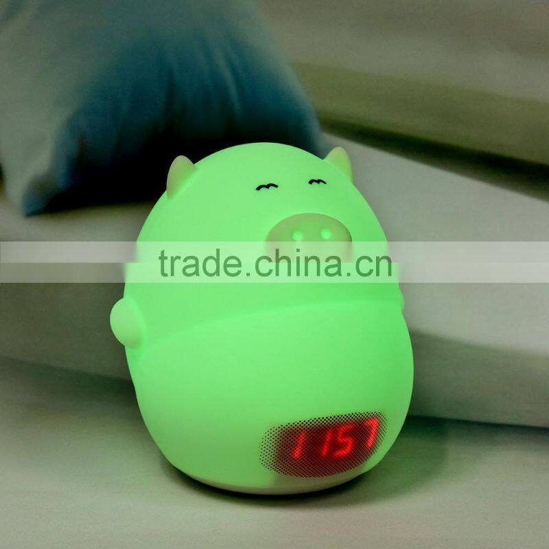 Most Popular Silicone Pig Shape Silicone Animal Led Alarm Clock Night Light For Kids