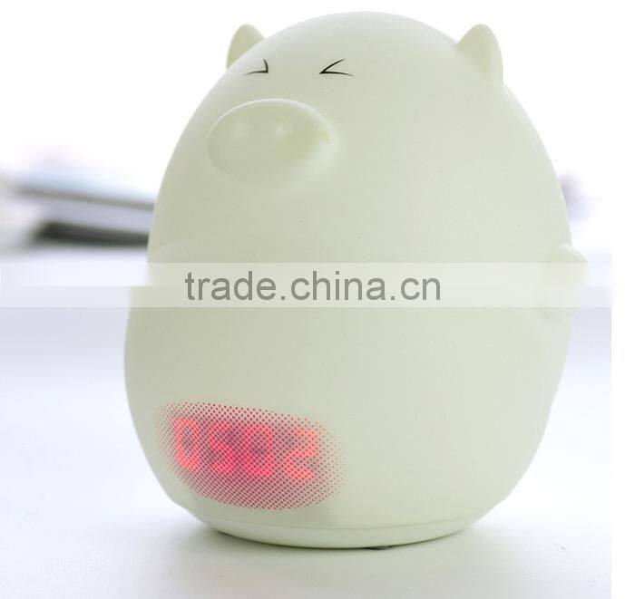 Pig Shape Silicone Animal Led Alarm Clock Night Light For Kids
